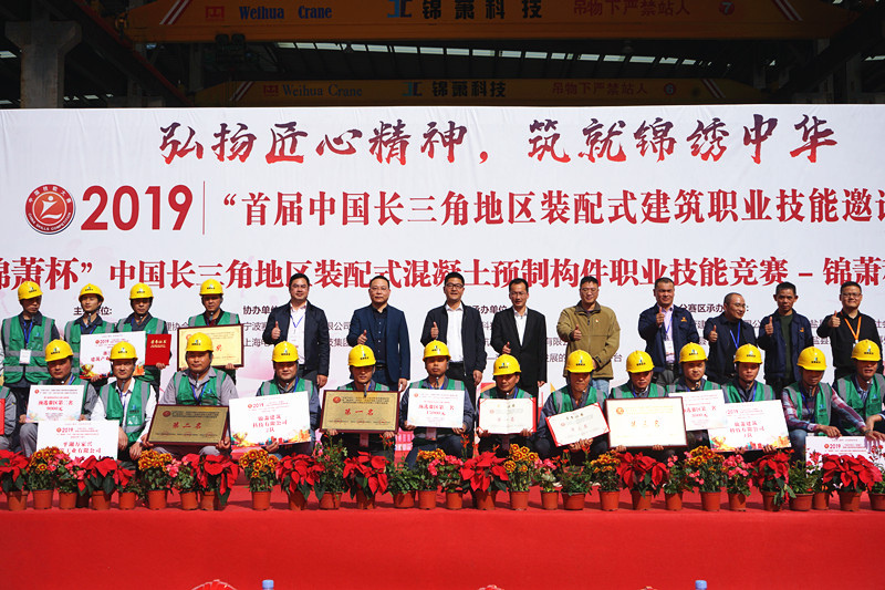 2019年11月16日上午,伴隨著莊嚴(yán)的國歌聲,首屆 “錦蕭杯”中國長三角地區(qū)裝配式混凝土預(yù)制構(gòu)件職業(yè)技能競(jìng)賽-浙江分賽區(qū)預(yù)賽閉幕式在錦蕭科技海鹽裝配式預(yù)制構(gòu)件生產(chǎn)基地順利舉行。