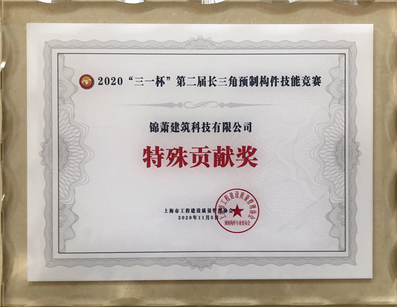 2020年11月8日下午,“三一杯”第二屆長(zhǎng)三角裝配式預(yù)制構(gòu)件職業(yè)技能競(jìng)賽總決賽在浙江三一筑工科技有限公司落下帷幕,來自上海、江蘇、浙江、安徽三省一市分賽區(qū)晉級(jí)的21支參賽隊(duì)角逐本屆競(jìng)賽總冠軍。經(jīng)過三天緊張的理論及實(shí)操比賽,錦蕭科技參賽隊(duì)?wèi){借優(yōu)異的表現(xiàn),勇奪大賽亞軍。