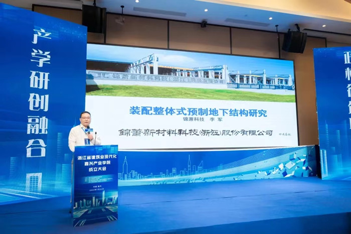 大會由嘉興市住房和城鄉(xiāng)建設(shè)局主辦,嘉興市建筑工業(yè)學(xué)校、嘉興職業(yè)技術(shù)學(xué)院、嘉興市城建職工培訓(xùn)中心及嘉興市綠色建筑與建筑工業(yè)化協(xié)會共同舉辦。成立儀式上,宣讀了學(xué)院30家成員單位名單并進(jìn)行了授牌儀式。作為學(xué)院理事單位之一,錦蕭科技董事長李軍應(yīng)邀出席大會接受授牌,并受邀作《裝配整體式預(yù)制地下結(jié)構(gòu)研究》專題報(bào)告,與參會領(lǐng)導(dǎo)、專家、學(xué)者共同探討裝配式建筑領(lǐng)域研究,持續(xù)發(fā)揮錦蕭專業(yè)價值,助力引領(lǐng)嘉興市裝配式建筑高質(zhì)量發(fā)展。