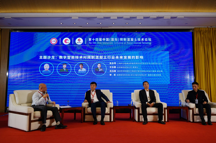 最后的主題沙龍環(huán)節(jié),上海市工程建設(shè)質(zhì)量管理協(xié)會預(yù)制構(gòu)件專業(yè)委員會主任朱永明,北京榆構(gòu)有限公司董事長王玉雷,深圳市華陽國際工程設(shè)計股份有限公司執(zhí)行董事、副總裁龍玉峰,錦蕭新材料科技(浙江)股份有限公司總工程師王建忠,4位專家圍繞“數(shù)字智能技術(shù)對預(yù)制混凝土行業(yè)未來發(fā)展的影響”這一主題,結(jié)合實戰(zhàn)經(jīng)驗,圍繞數(shù)智技術(shù)、綠色技術(shù)的發(fā)展對裝配式產(chǎn)業(yè)未來的影響,各抒己見,給出了中肯的意見和建議。