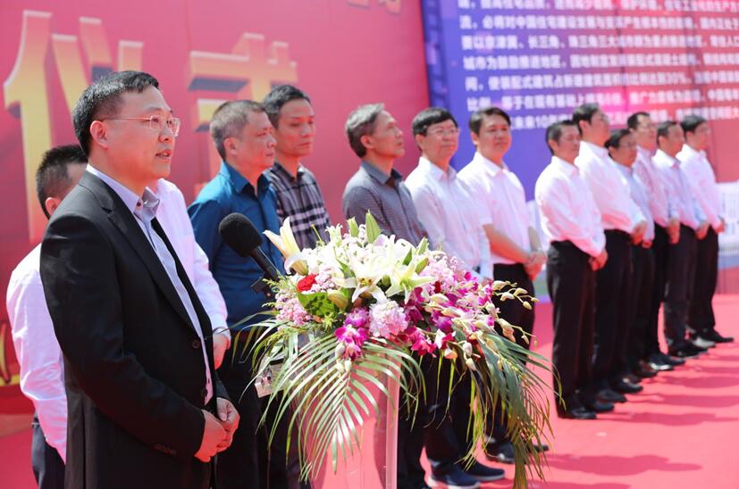 錦蕭科技董事長李軍介紹投資興建"年產(chǎn)70萬立方米建筑裝配式預(yù)制構(gòu)件生產(chǎn)建設(shè)項(xiàng)目"是積極響應(yīng)國家發(fā)展綠色建筑業(yè)的號召,項(xiàng)目總投資為8.05億元,新征建設(shè)用地152601平方米,工廠生產(chǎn)及配套用房建筑面積8.8萬平方米,擁有10個(gè)車間,成品堆場面積為8.34萬平方米,并配備運(yùn)輸碼頭一座,建成后年產(chǎn)量最大達(dá)70萬立方米,將成為目前國內(nèi)單個(gè)最大的裝配式PC構(gòu)件生產(chǎn)基地,產(chǎn)品會覆蓋上海、蘇州、嘉興、杭州、紹興、寧波等長三角地區(qū),并對前來參加奠基儀式的各位領(lǐng)導(dǎo)和各界朋友表示衷心感謝,作了歡迎詞。