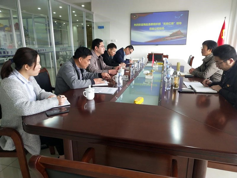 2019年04月02日上午,海鹽縣委組織部副部長夏一飛、組織部兩新科科長朱世鵬、望海街道黨委組織委員繆李偉,”黨務(wù)紅領(lǐng)‘’富雪祥一行蒞臨公司指導(dǎo)工作。