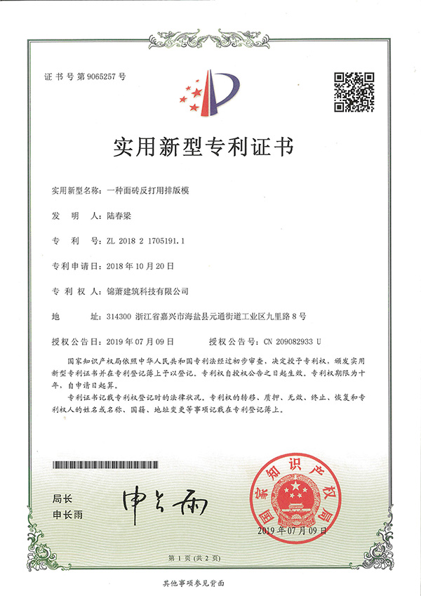 專利證書-一種流水線養(yǎng)護窯系統(tǒng)
