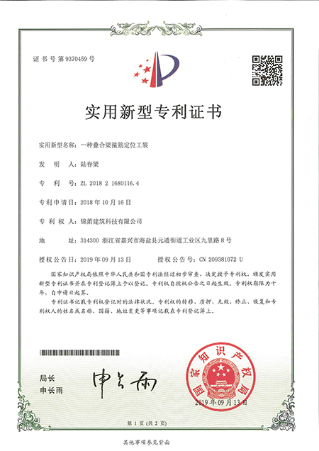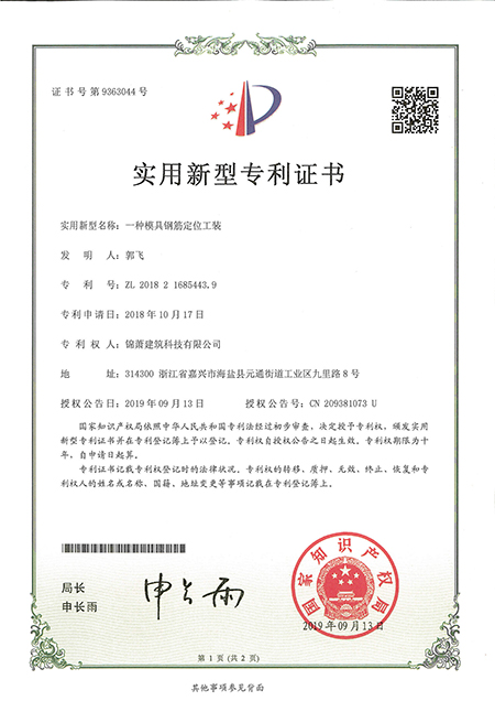 專利證書--一種預(yù)制字體構(gòu)件的模具