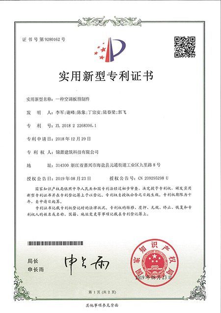 專利證書--一種具有中框保溫結(jié)構(gòu)的預(yù)制填充墻
