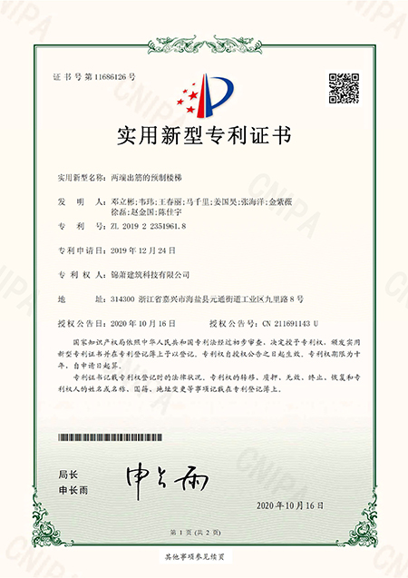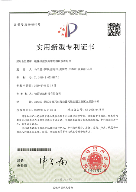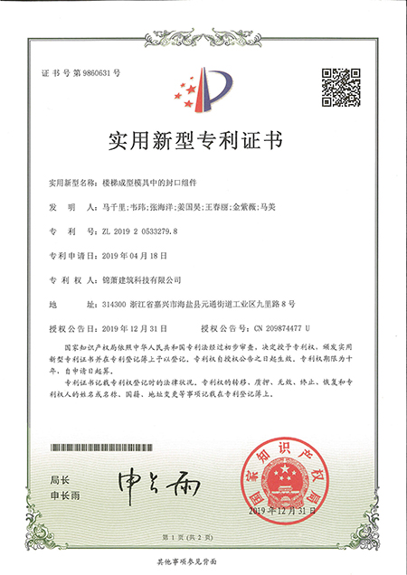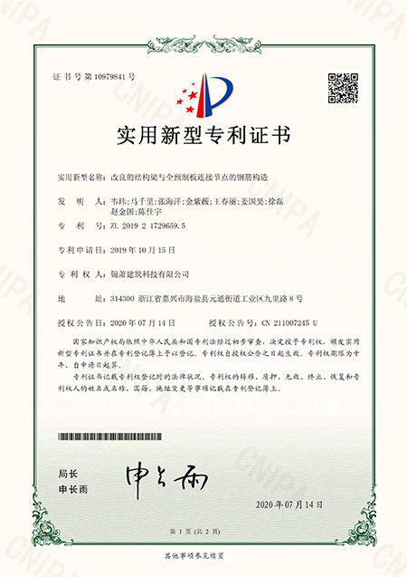 專(zhuān)利證書(shū)--用于PC預(yù)制構(gòu)件的脫模裝置